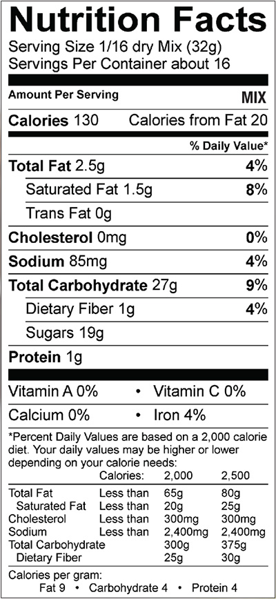 Nutritional Info for Gluten Free Chocolate Brownie Mix