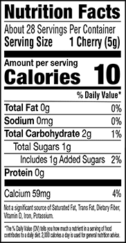 Cherries, Water, Sugar, Lemon Juice Concentrate, Fruit and Vegetable Concentrate (color), Natural Flavors, Chili Extract, Cinnamon Extract.