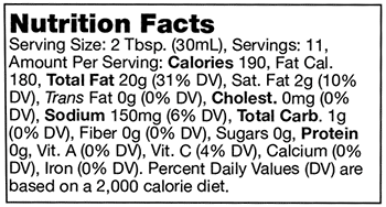 Avocado Oil, Lemon Juice, Water, Dried Garlic, Salt, Granulated Onion, Black Pepper, Xanthan Gum, Natural Flavor and Tocopherols (natural antioxidant), Ground Turmeric