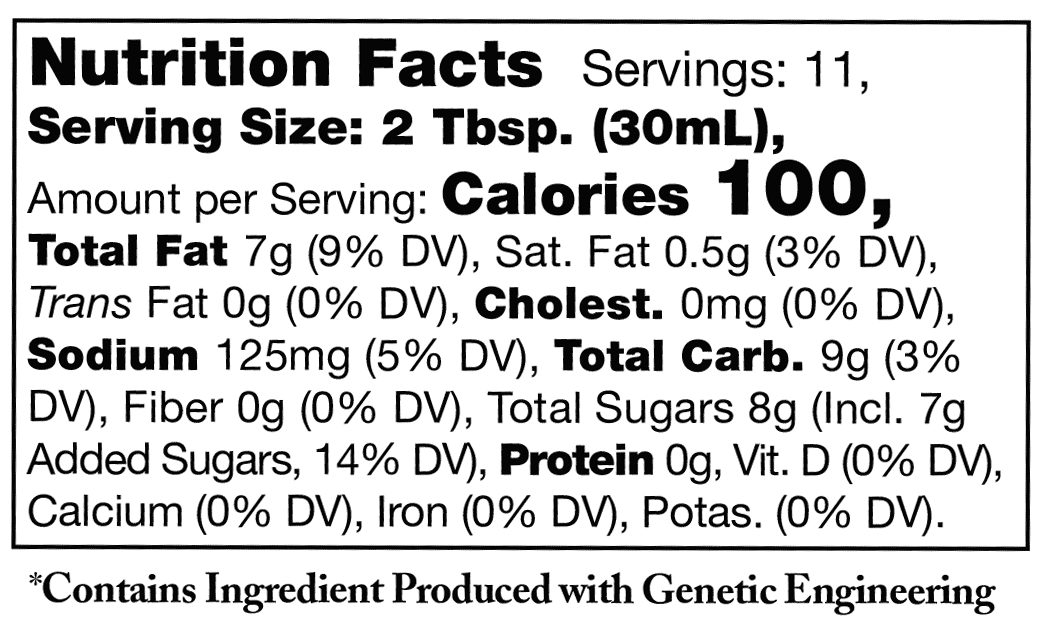 Water, Canola Oil, Pure Cane Sugar, Brown Sugar, Maple Syrup, Honey, Cider Vinegar, Balsamic Vinegar (wine vinegar, grape must, colorant caramel) [naturally occurring sulfites], Dijon Mustard (vinegar, water, mustard seed, salt, white wine, citric acid, turmeric, tartaric acid, spices), Soy Sauce (water, wheat, soybeans, salt), Candied Ginger (ginger, sugar), Salt, Spices, Dried Garlic, Citric Acid, Xanthan Gum