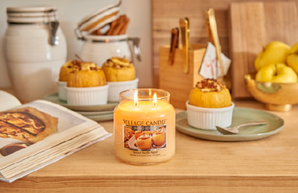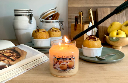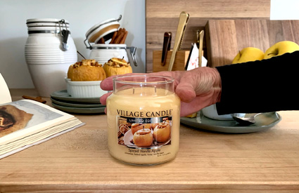 Today we’re going to give you a little behind-the-scenes look at our Village Candle photoshoots! Since you can’t smell a candle through a photo, one of our goals of our candle photography is to give a peek into the experience you’re going to have while burning the candle! We want the photos to share our vision of the candle, the notes of the fragrance, and spark a feeling with the customer. We’re going to take a look at what went into photographing our new seasonal fragrance, Spiced Vanilla Apple.