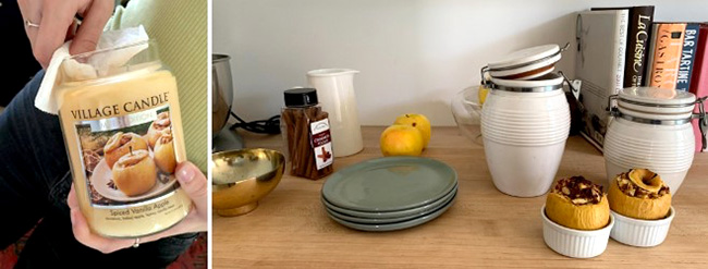 Before the photoshoot even begins, we brainstorm ideas of what we’d like the photograph to look like or elements that we’d like featured. Of course, the candle is the star of the show so everything that surrounds it needs to compliment the color, the label, and fragrance. When brainstorming for Spiced Vanilla Apple, we knew that we wanted to create a cozy kitchen moment which of course featured a few beautiful baked apples – just like the label! From there we’ll find some inspiration images and provide them to the photo stylist, here are a few of our inspiration boards!