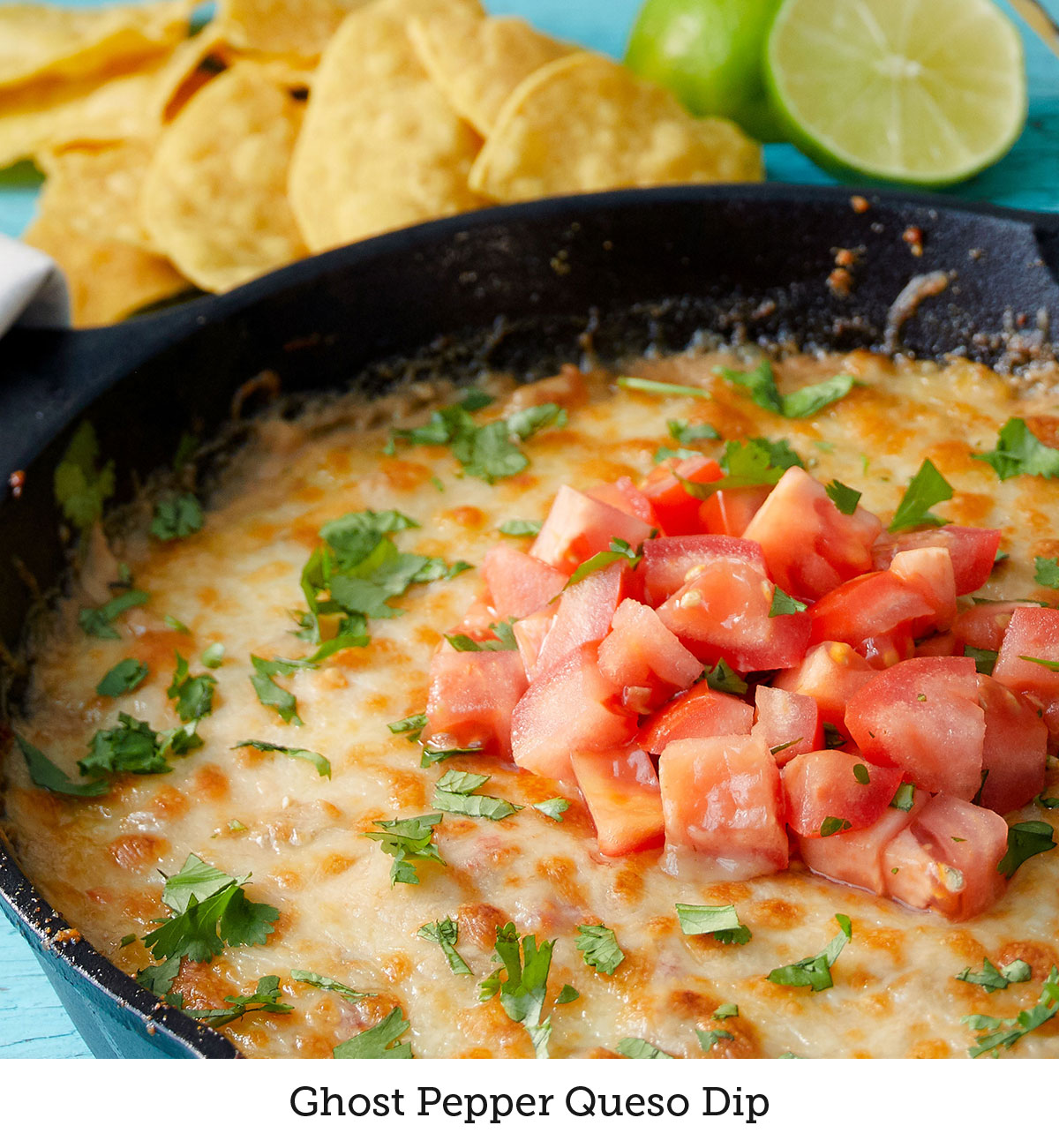 Now that you know how to pick out, clean, and season cast iron pan – let’s chat about some yummy recipes! Our Ghost Pepper Queso Dip is a great option that utilize the heat retaining qualities of a cast iron, allowing the dip to stay warm during serving. You can serve directly from the hot skillet - but be sure to cool it for a few minutes first and use an oven mitt, kitchen towel, or Silicone Hot Handle Holder to keep folks from grabbing the handle while it’s still hot!
