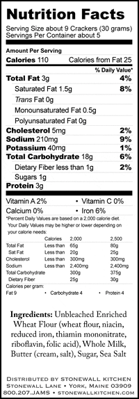 Enriched Unbleached Flour (wheat flour, malted barley flour, niacin, reduced iron, thiamine mononitrate, riboflavin, folic acid), Whole Milk (milk, vitamin D3), Butter (cream, salt), Sugar, Sea Salt, Topping Salt