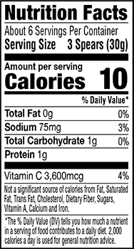Our asparagus pickles are processed in Washington state’s Yakima Valley. Occasionally, you may see gray flecks on the pickled asparagus. This is a perfectly edible protein, which occurs naturally during the pickling process.
